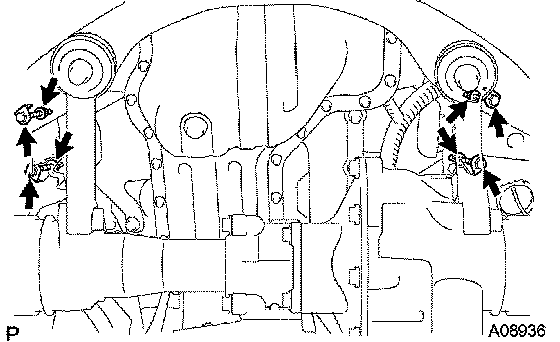 b. Disconnect the 2 PS air hoses from hose clamp on the No.3 RH timing belt cover.