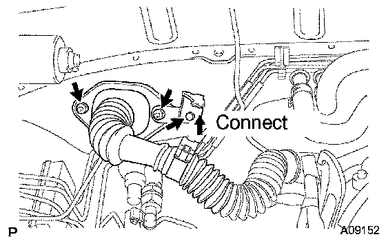 e. Connect the PS air hose, air inlet hose for EVAP, PCV hose and MAF meter connector to the intake air connector.