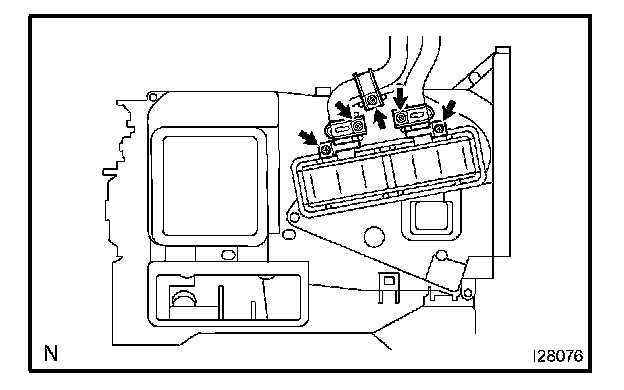 c. Remove the 2 screws and 2 clips, then disconnect the heater radiator pipes.