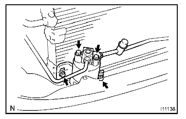 Remove the 2 bolts and disconnect both tubes.