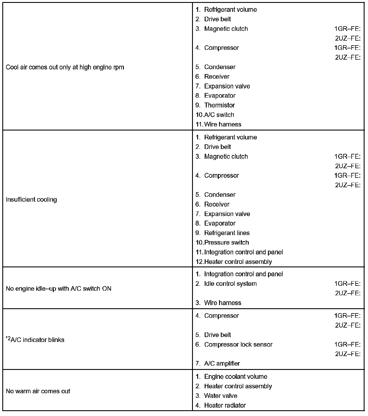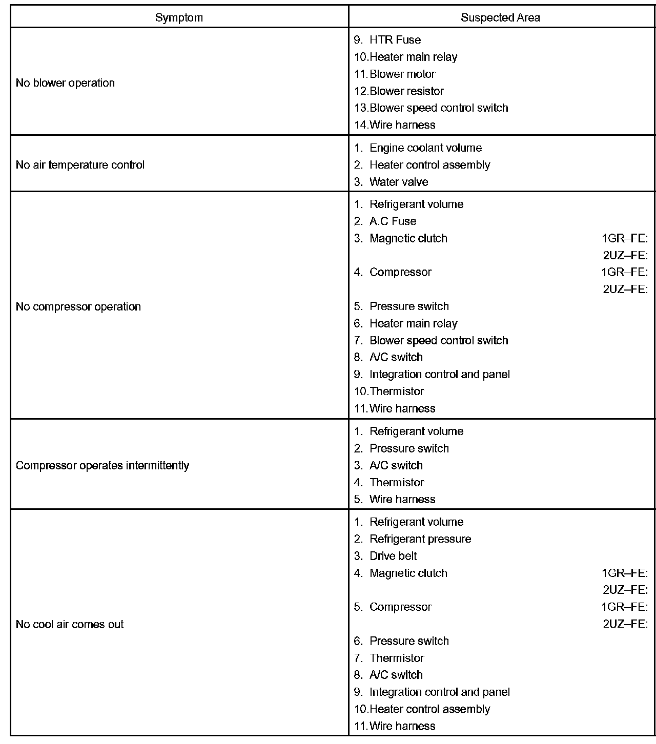 Problem Symptoms Table - Air Conditioning System Part 2: