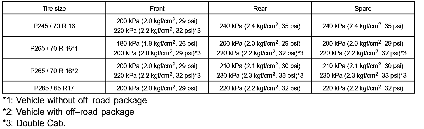 a. Set the tire air pressure for all wheels, including the spare, to the specified value.