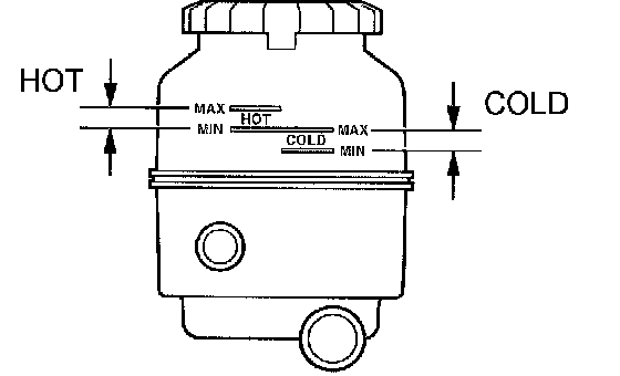 If the fluid level rise exceeds the maximum, bleed air from the power steering system.