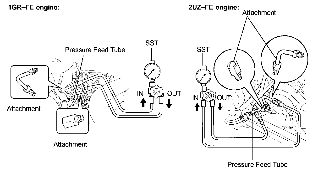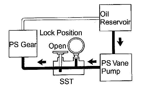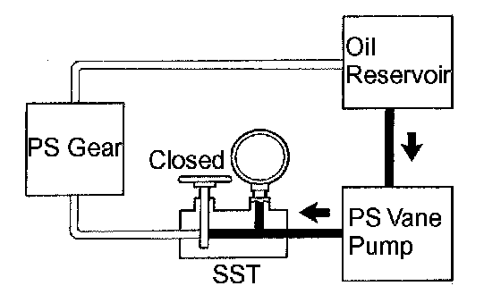g. With the engine idling, close the valve of the SST and observe the reading on the SST