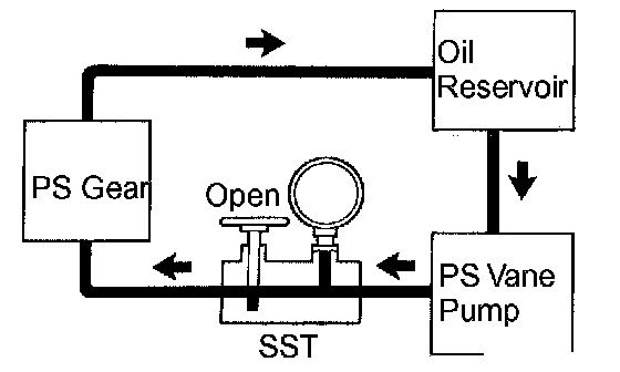 j. With the engine idling and the valve fully opened, turn the steering wheel left or right to the full lock position.