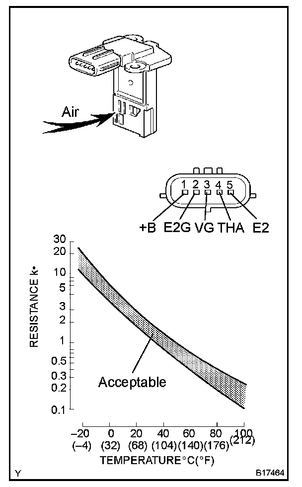 Using an ohmmeter, measure the resistance between terminals 4 (THA) and 5 (E2).