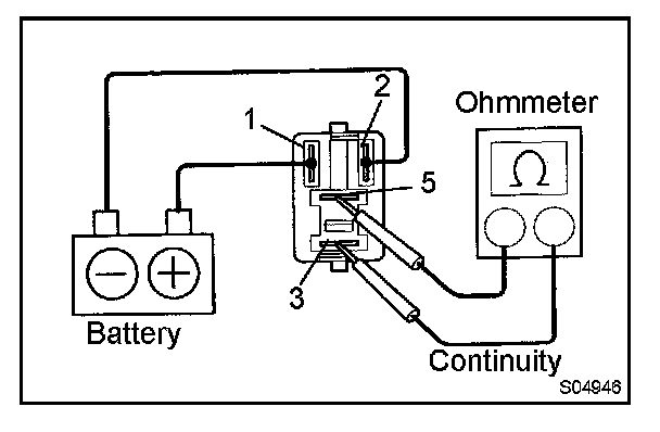 a. Using an ohmmeter, check that there is continuity between terminals 1 and 2. If there is no continuity, replace the relay.