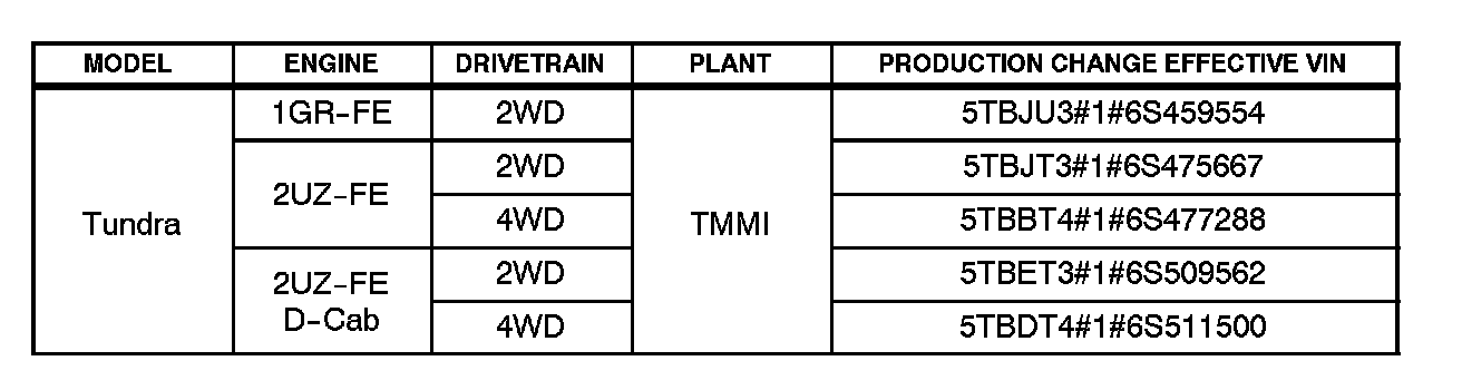 ^ 2005 - 2006 model year Tundra vehicles produced BEFORE the Production Change Effective VINs shown below.