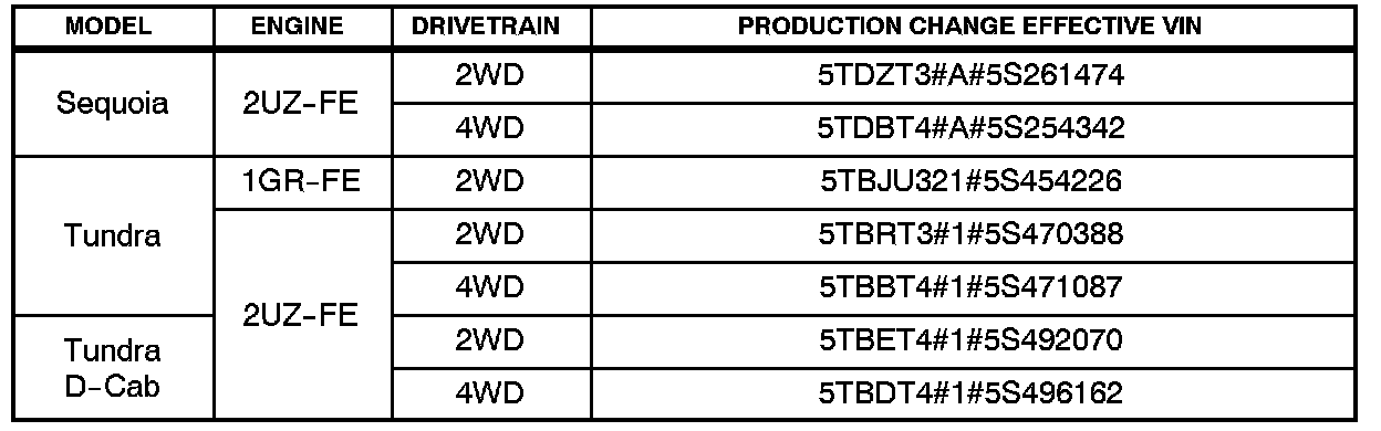 ^ 2005 model year Sequoia and Tundra vehicles produced BEFORE the Production Change Effective VINs shown below.