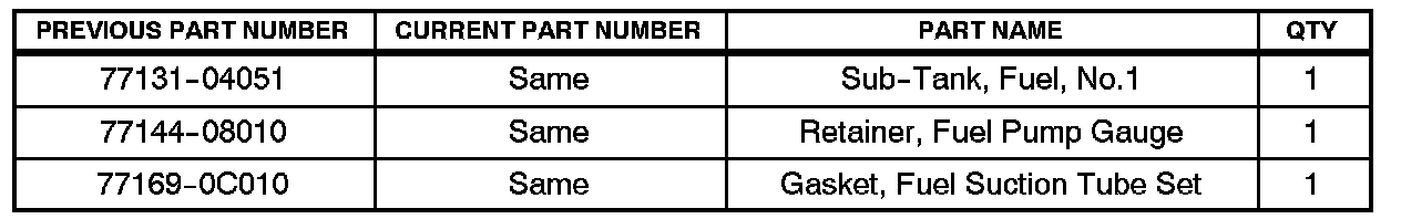^ 2005 model year Tundra Repair Manual: SFI (1GR-FE) or (2UZ-FE): Fuel Pump: Removal/ Disassembly/ Reassembly/ Installation