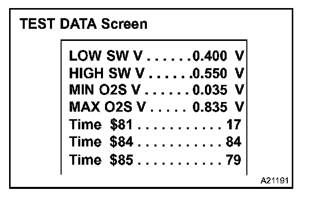 The ECM monitors the O2S in the various items. You can read the monitor result (TEST DATA) of each monitor item using the O2S TEST RESULT. However, the output value of the TEST DATA is the latest "snapshot" value that is taken after monitoring and therefore it is not dynamic.