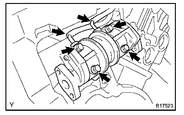 b. Install 2 new gaskets and 2 No.2 air switching valves with the 4 bolts to the rear water by-pass joint.