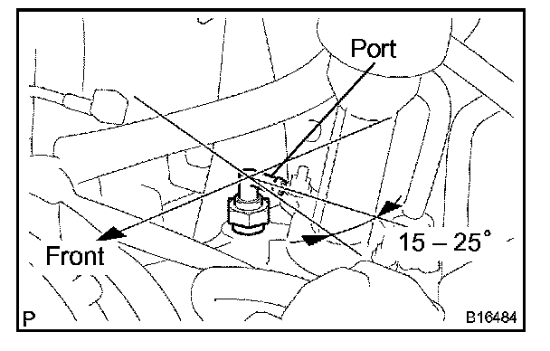 HINT: After applying the specified torque, rotate the PCV valve clockwise with the port faced in the direction indicated in the illustration.