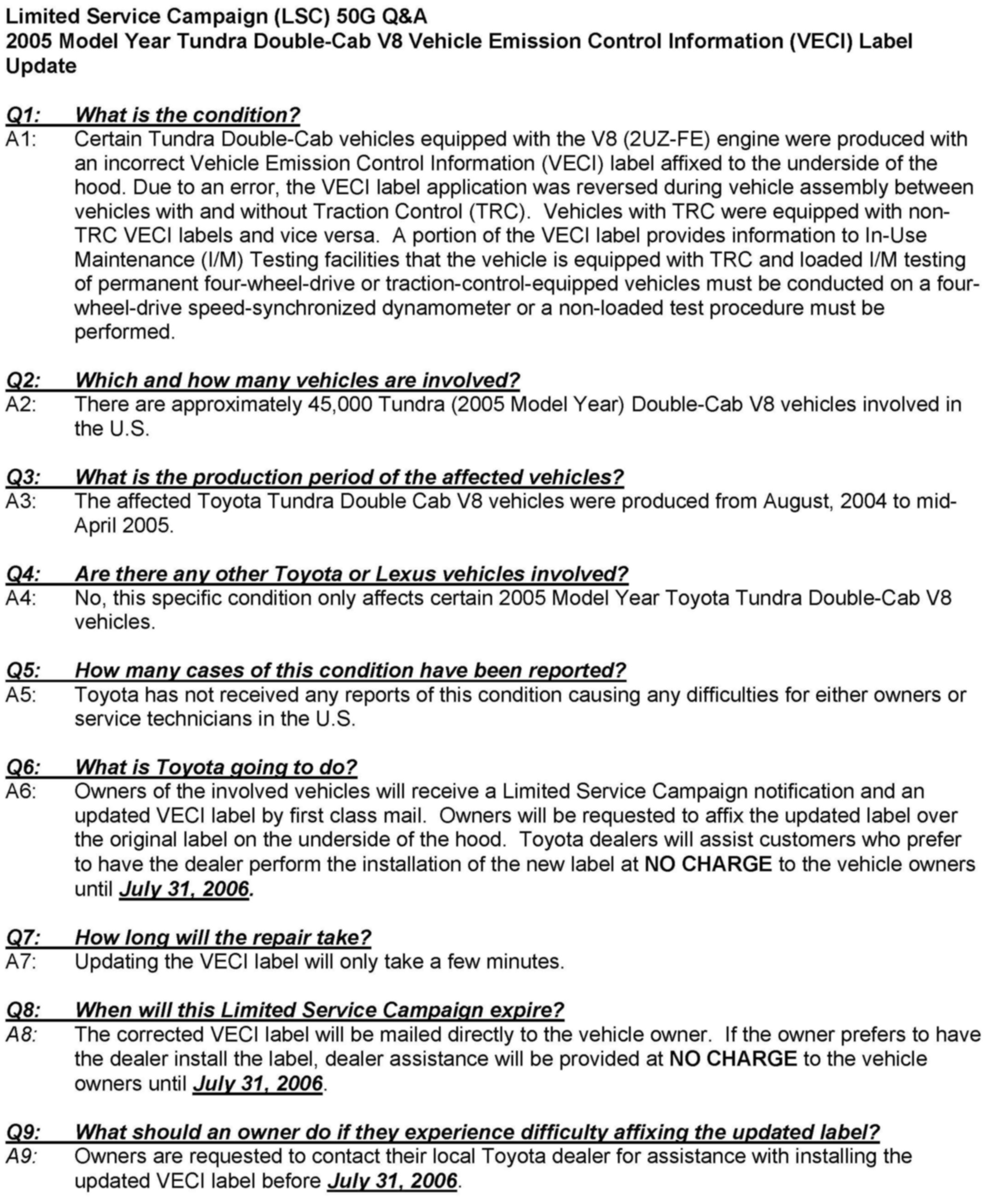 Recall - Incorrect VECI Label Installed At Production