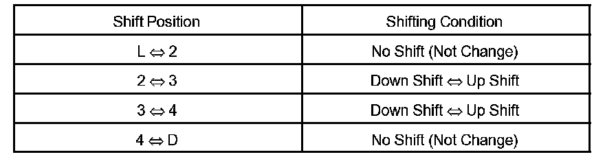 Shifting the shift lever to the L, 2, 3, 4 and D position to check whether the shifting condition changes the table.