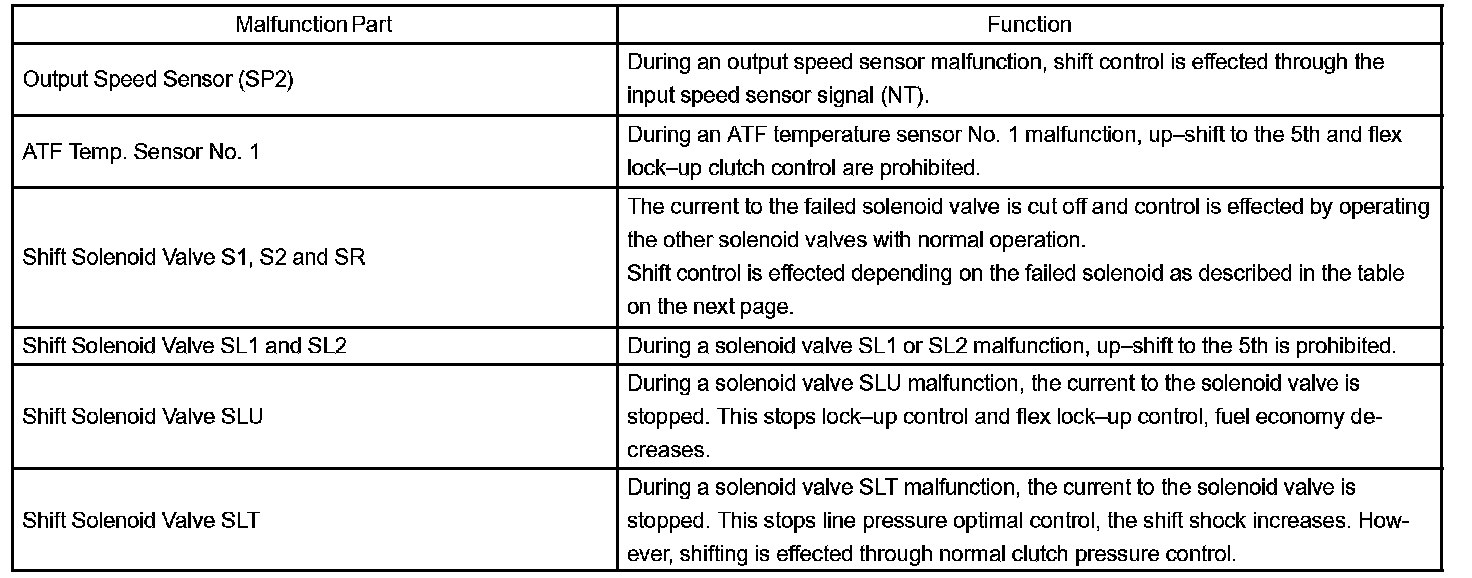 This function minimizes the loss of the ECT functions when any malfunction occurs in a sensor or solenoid.