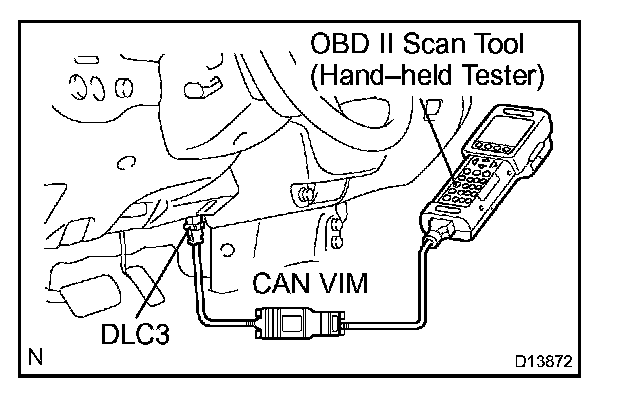 To check DTCs, connect the scan tool to the Data Link Connector 3 (DLC3) of the vehicle. The scan tool displays DTCs, the freeze frame data and a variety of the engine data.