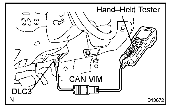 a. Connect a hand-held tester to the Controller Area Network Vehicle Interface Module (CAN VIM). Then connect the CAN VIM to the Date Link Connector 3 (DLC3).