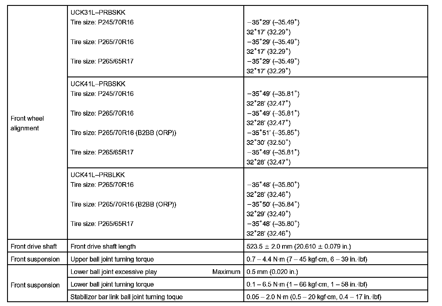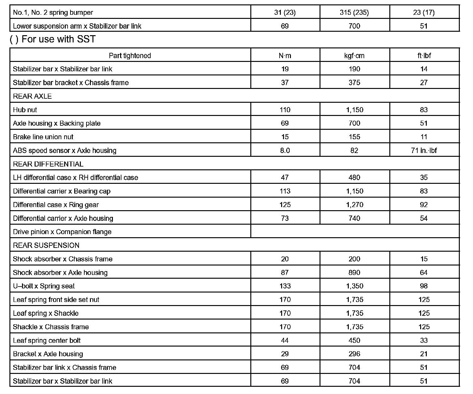 Suspension And Axle - Torque Specification Part 1: