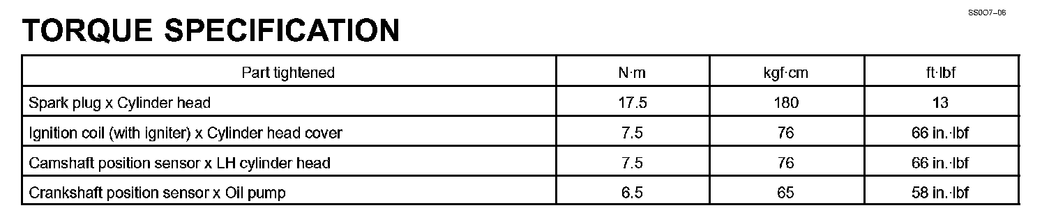 Ignition - Torque Specification: