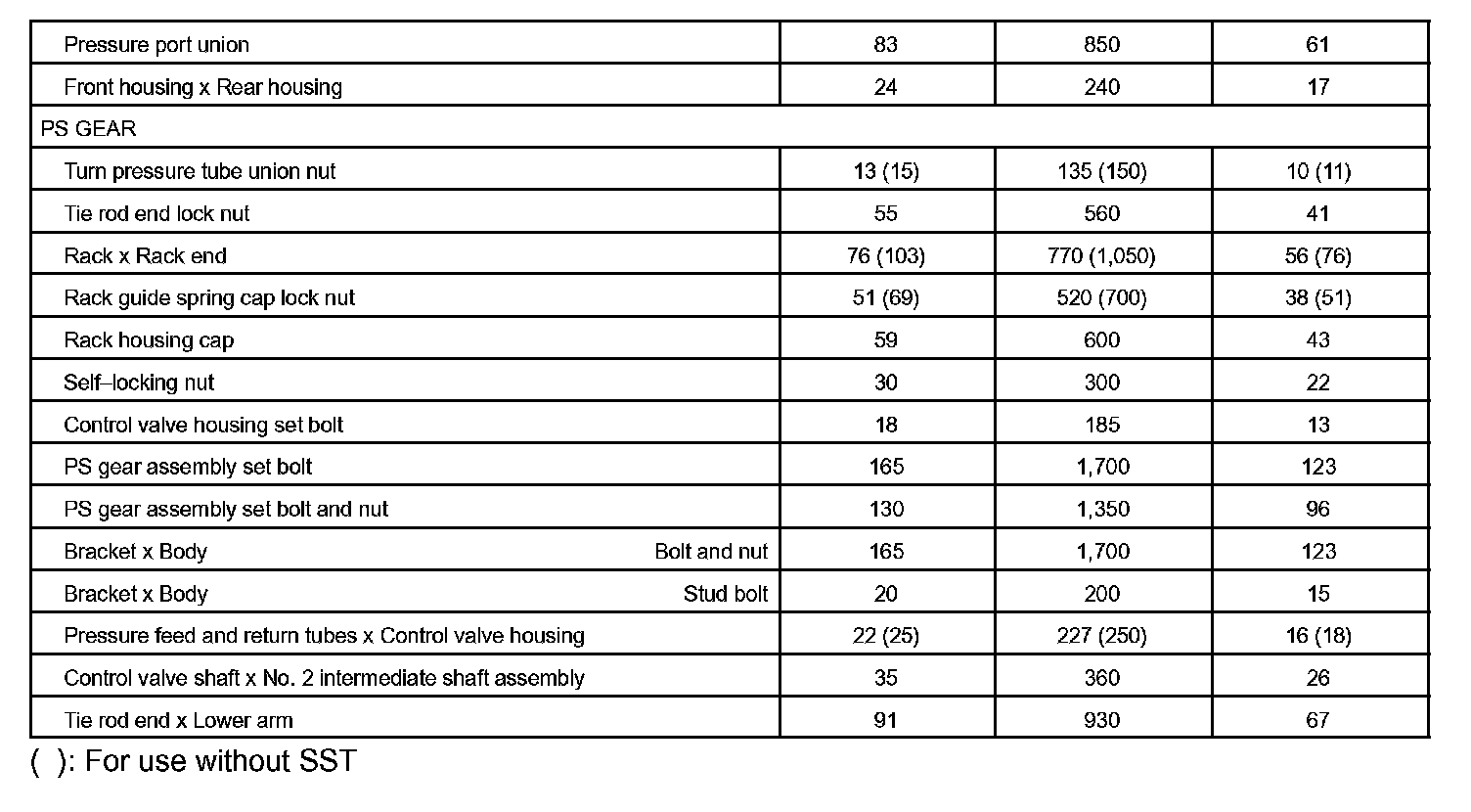 Steering - Torque Specification Part 2: