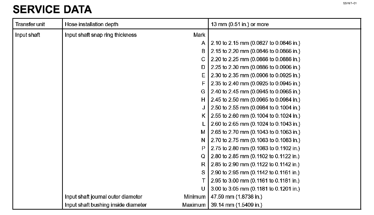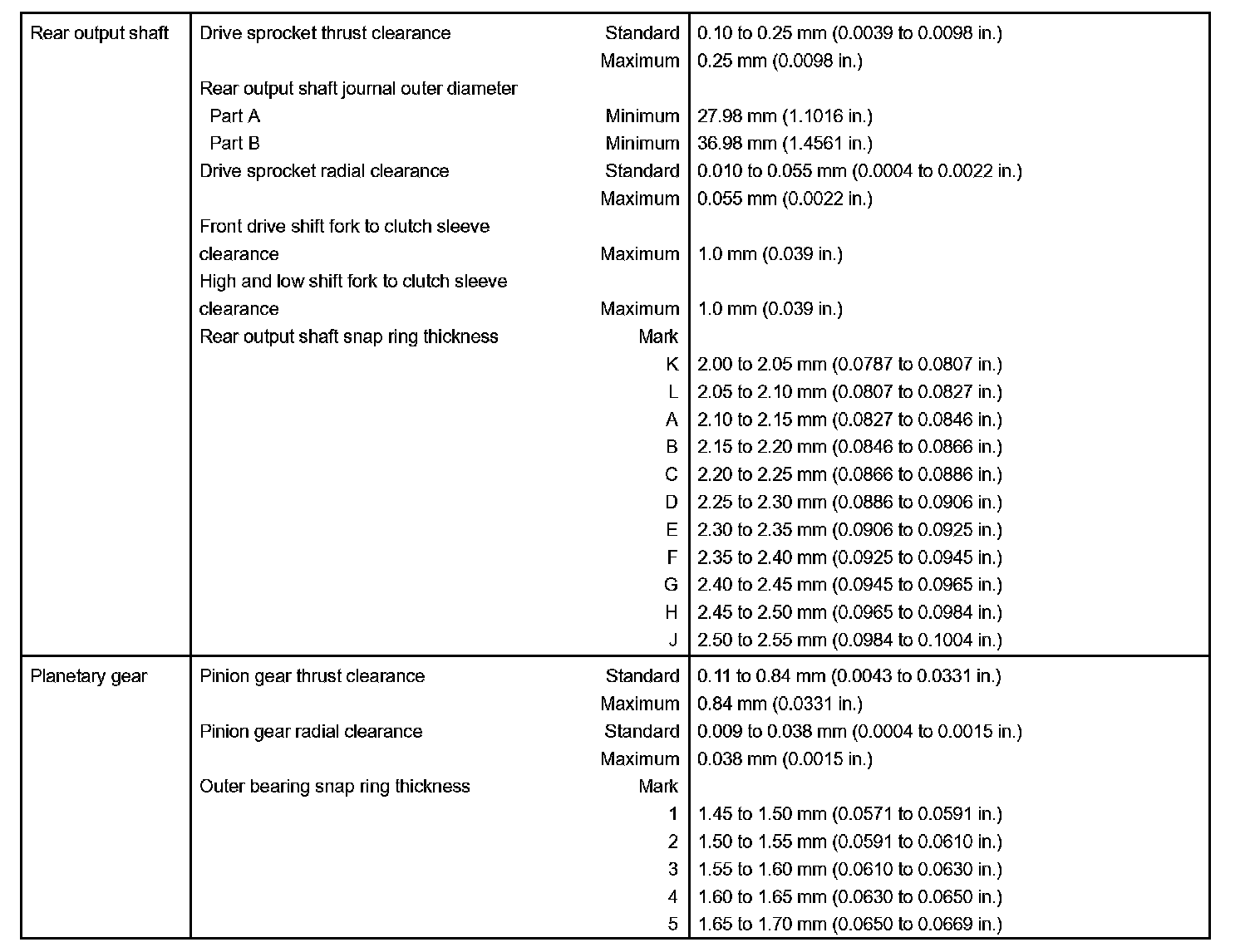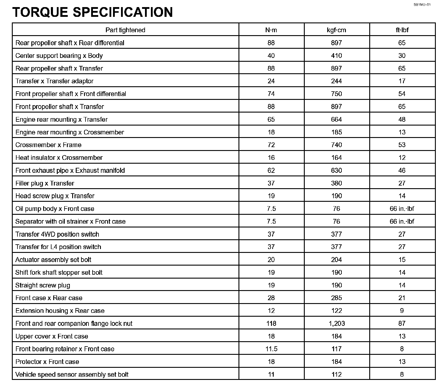 Transfer - Torque Specification: