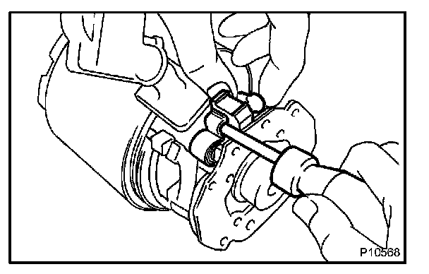 c. Using a screwdriver, hold the spring back and disconnect the brush from the brush holder. Disconnect the 4 brushes, and remove the brush holder.