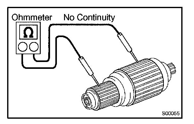 Using an ohmmeter, check that there is no continuity between the commutator and armature coil core.