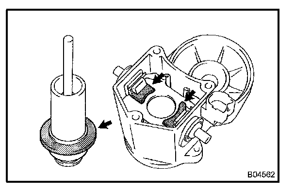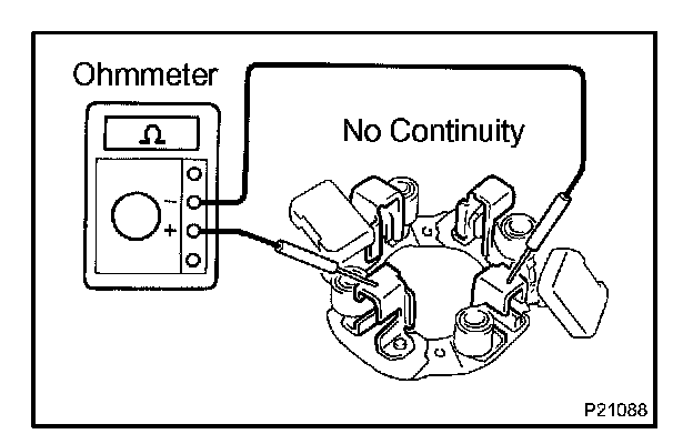Using an ohmmeter, check that there is no continuity between the positive (+) and negative (-) brush holders.