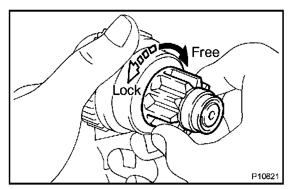 Rotate the pinion gear clockwise, and check that it turns freely. Try to rotate the pinion gear counterclockwise and check that it locks.