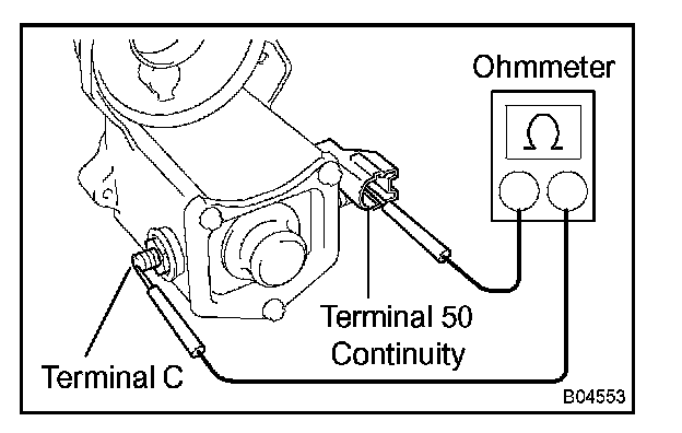 Using an ohmmeter, check that there is continuity between terminals 50 and C.