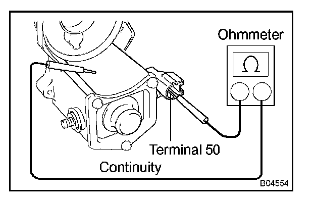 Using an ohmmeter, check that there is continuity between terminal 50 and the switch body.