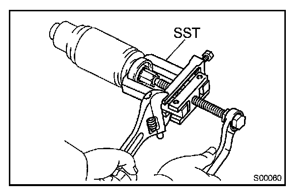 HINT: At the time of assembly, please refer to the following item. Apply grease to the return spring and insert the return spring into the clutch shaft hole.