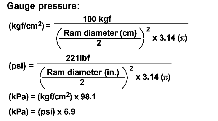 - Check the diameter of the hand press ram. Then calculate the gauge pressure of the press when 981 N (100 kgf, 221 lbf) of force is applied.