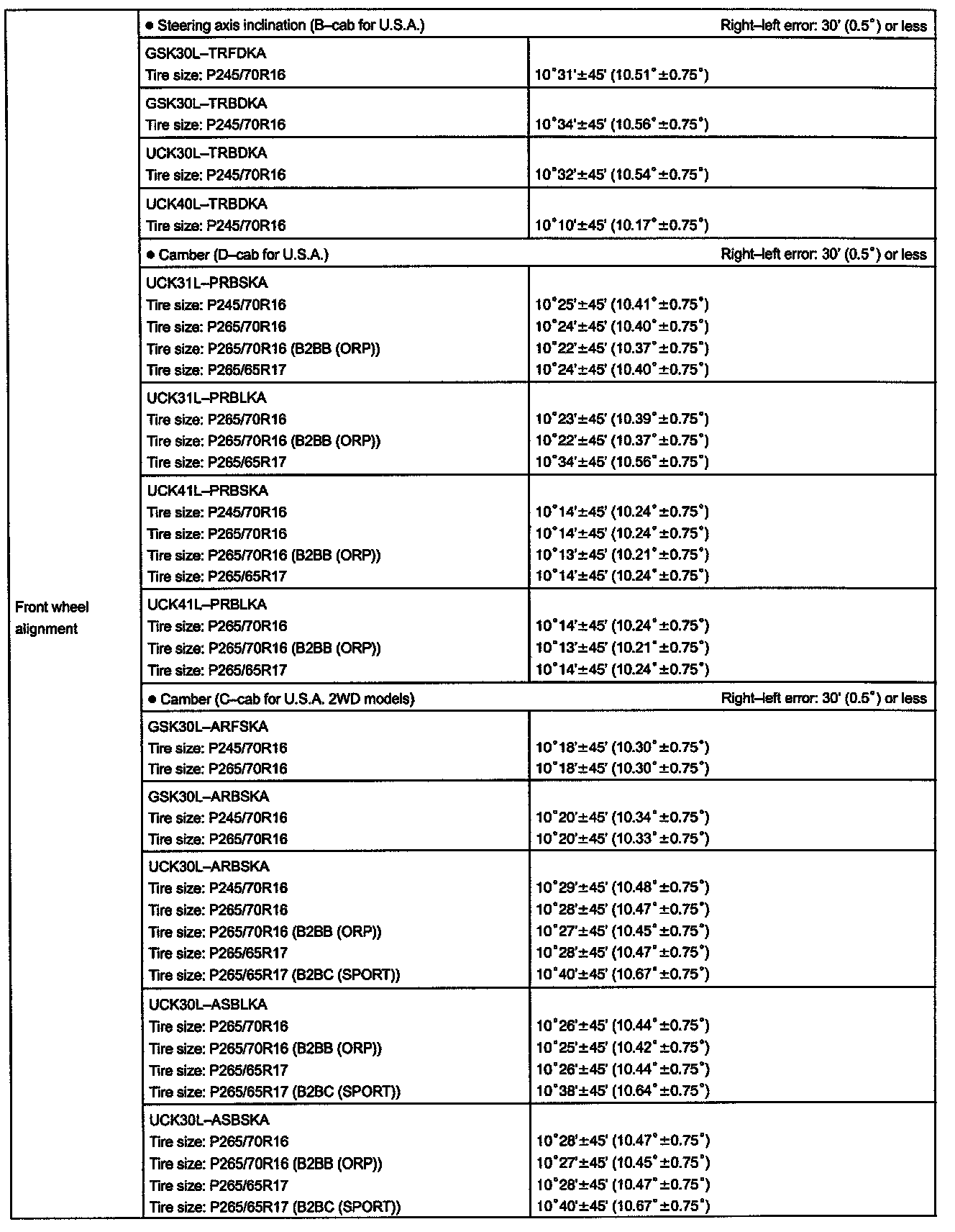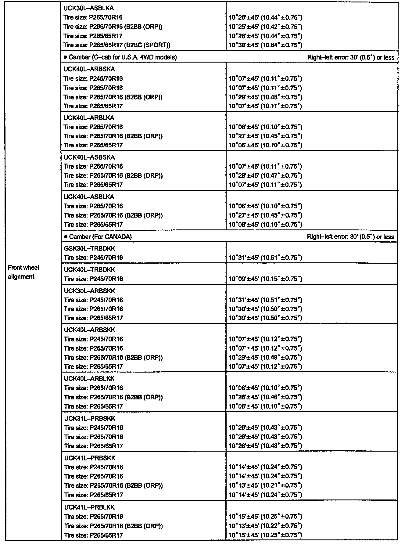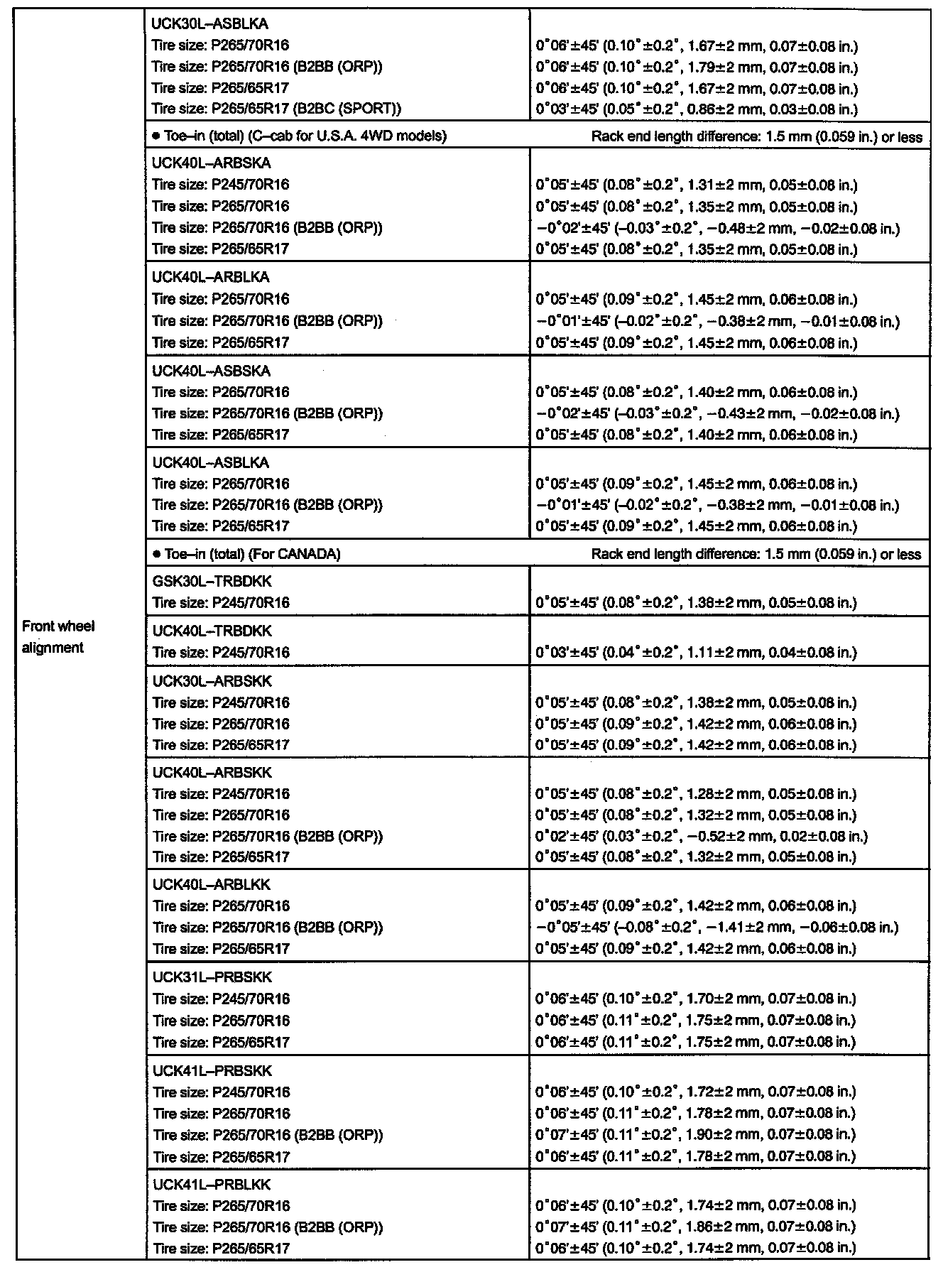 Alignment: Specifications