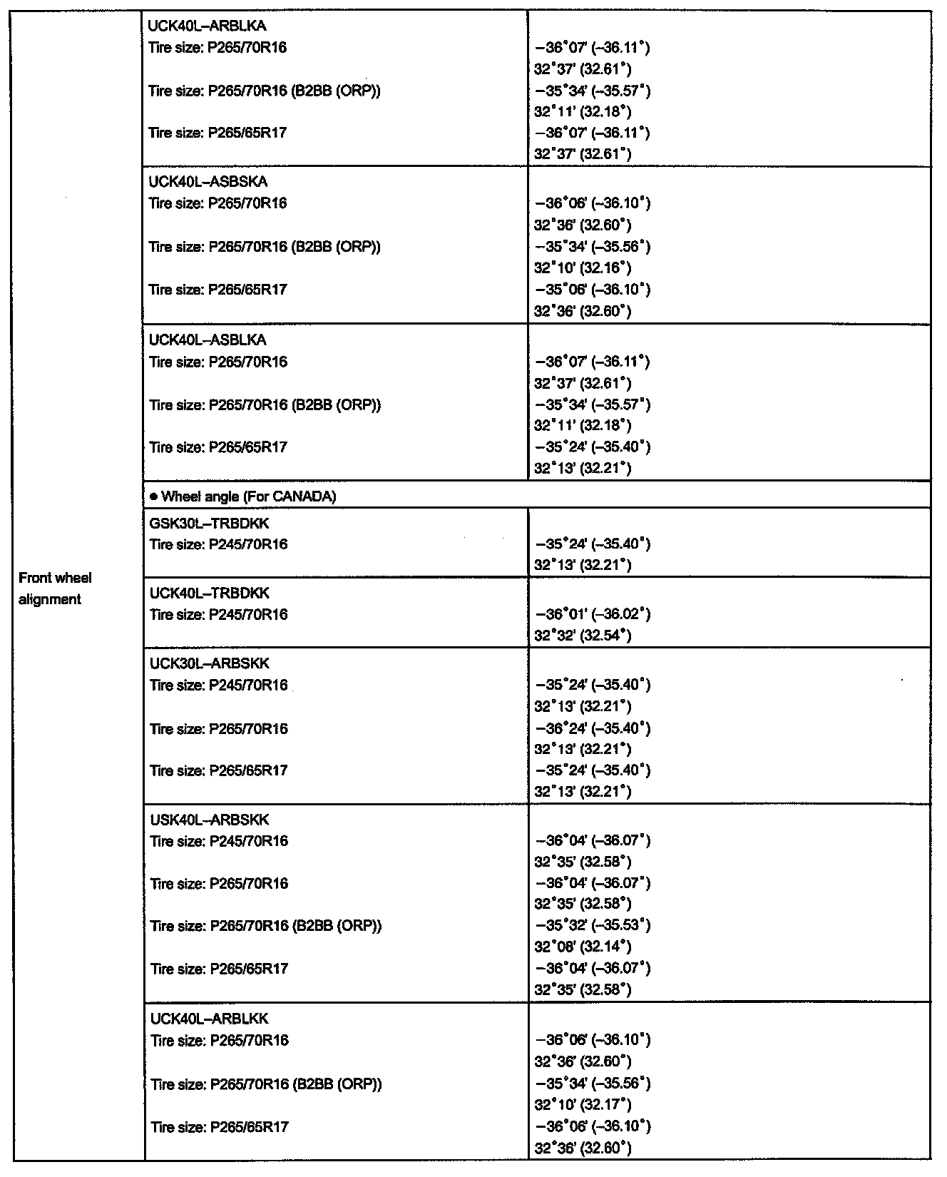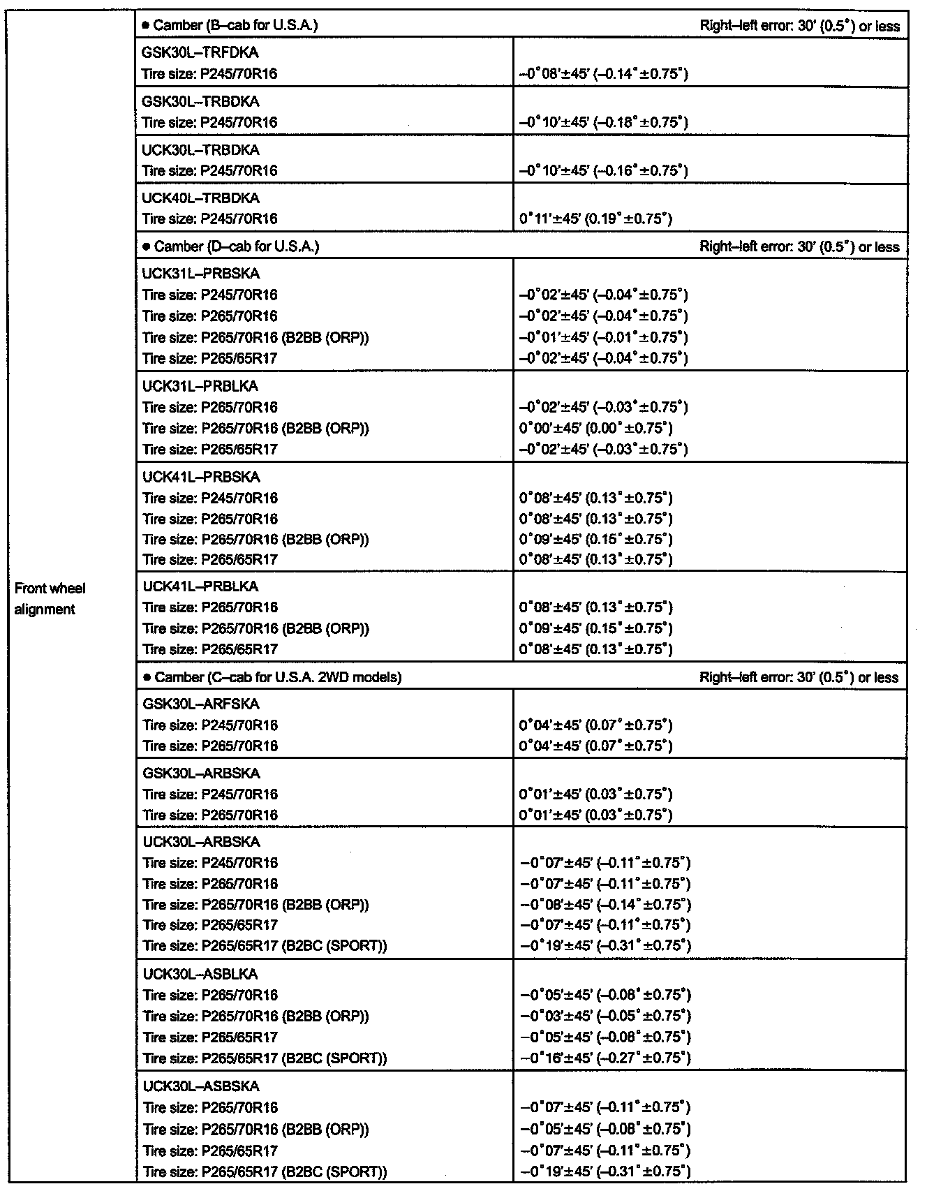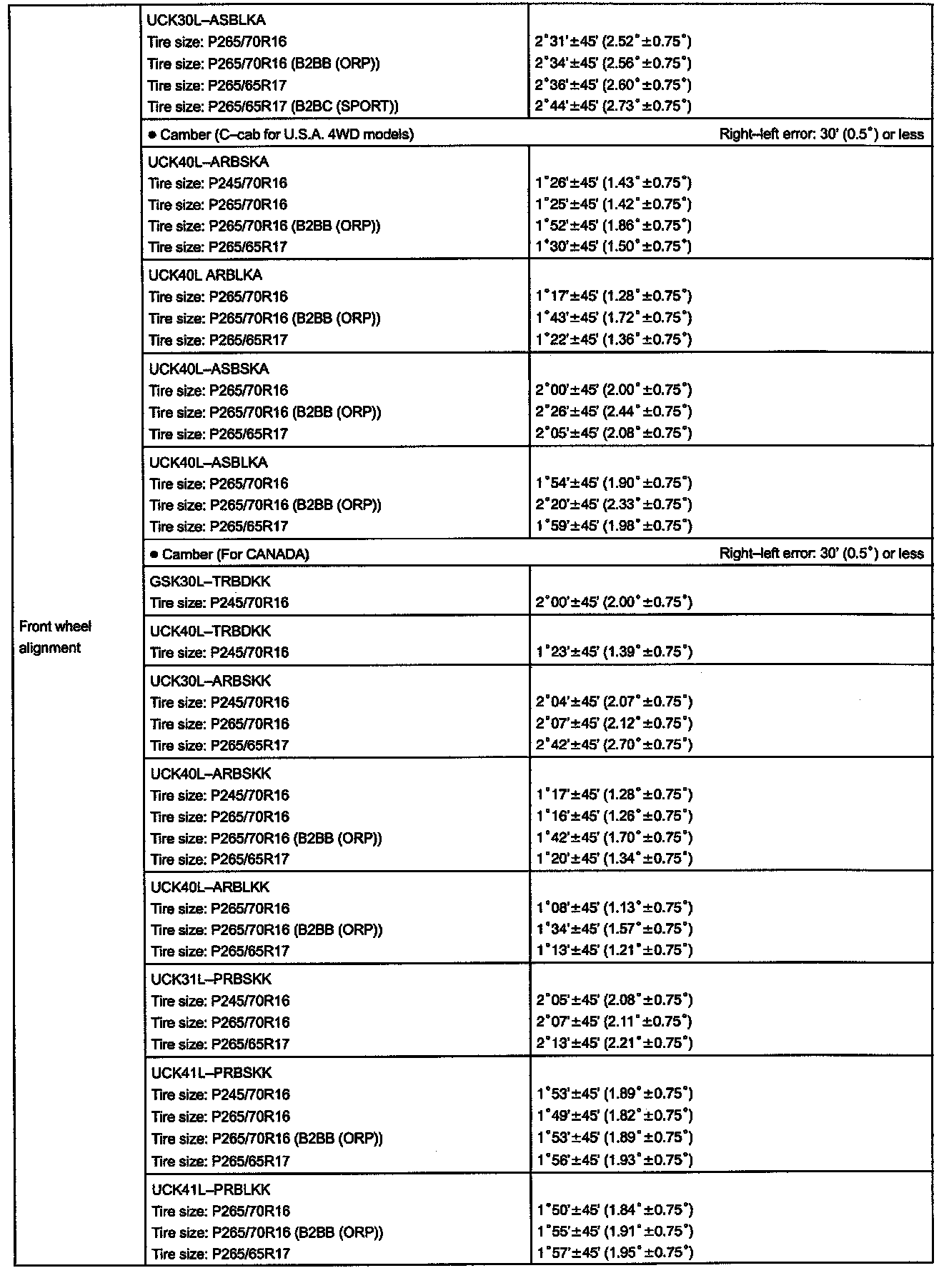 Alignment: Specifications