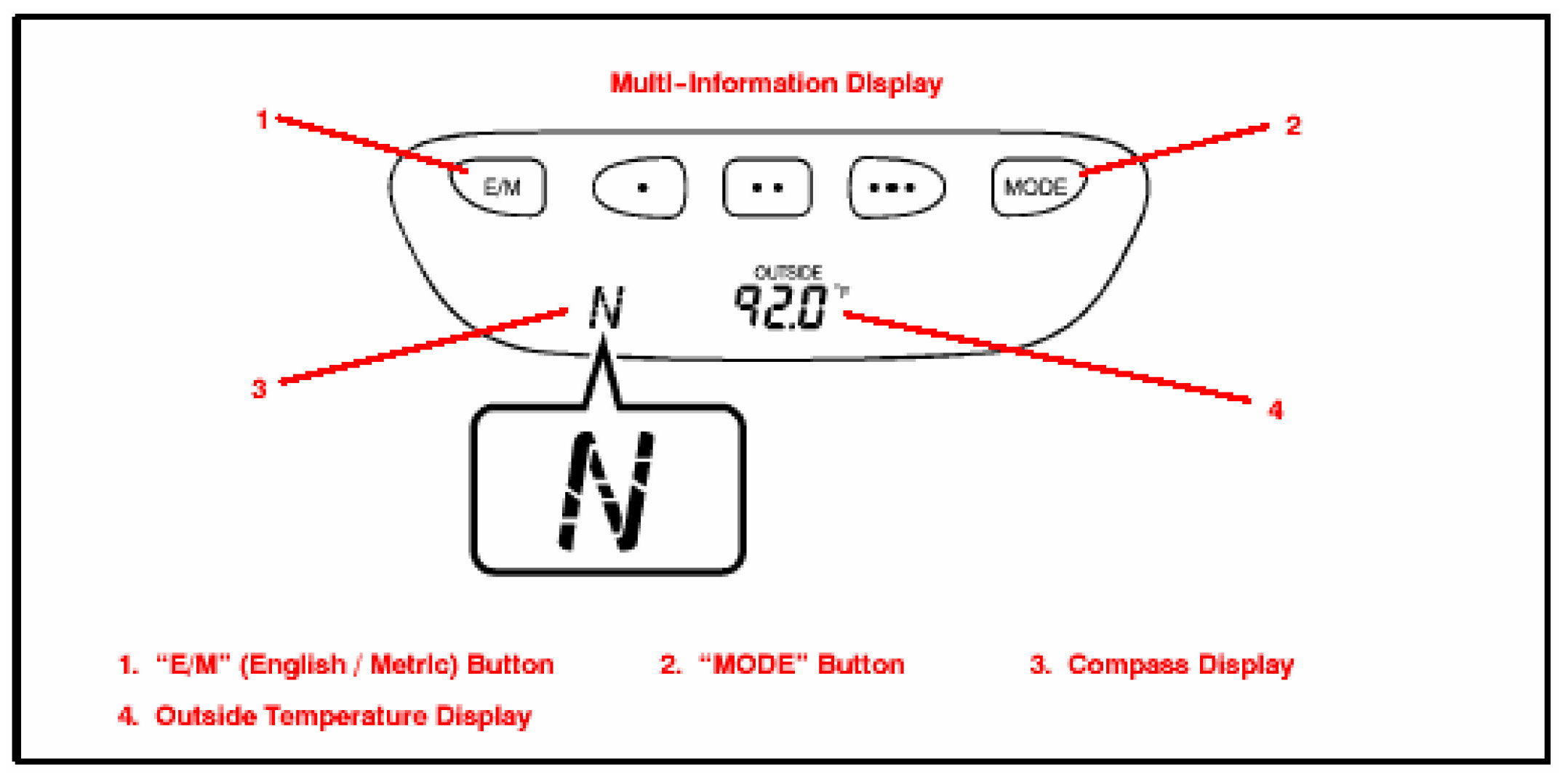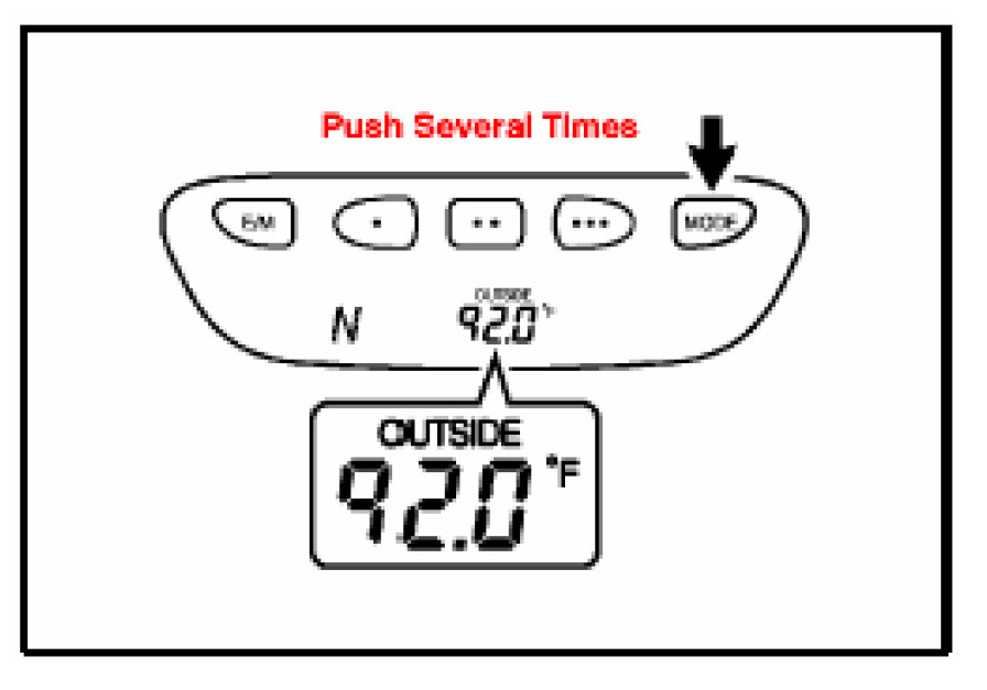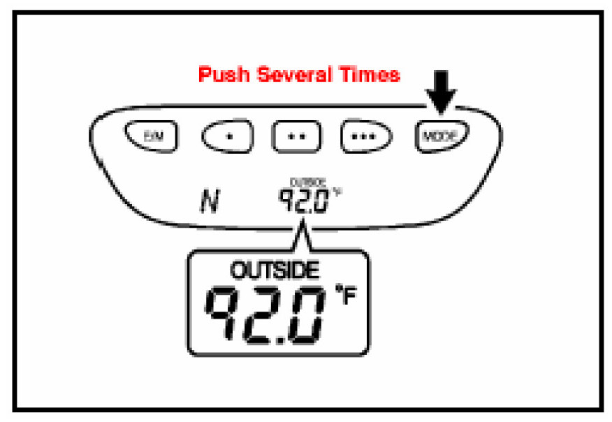 6. Start the engine. Then, push the "MODE" button several times until outside temperature and compass direction on the display.