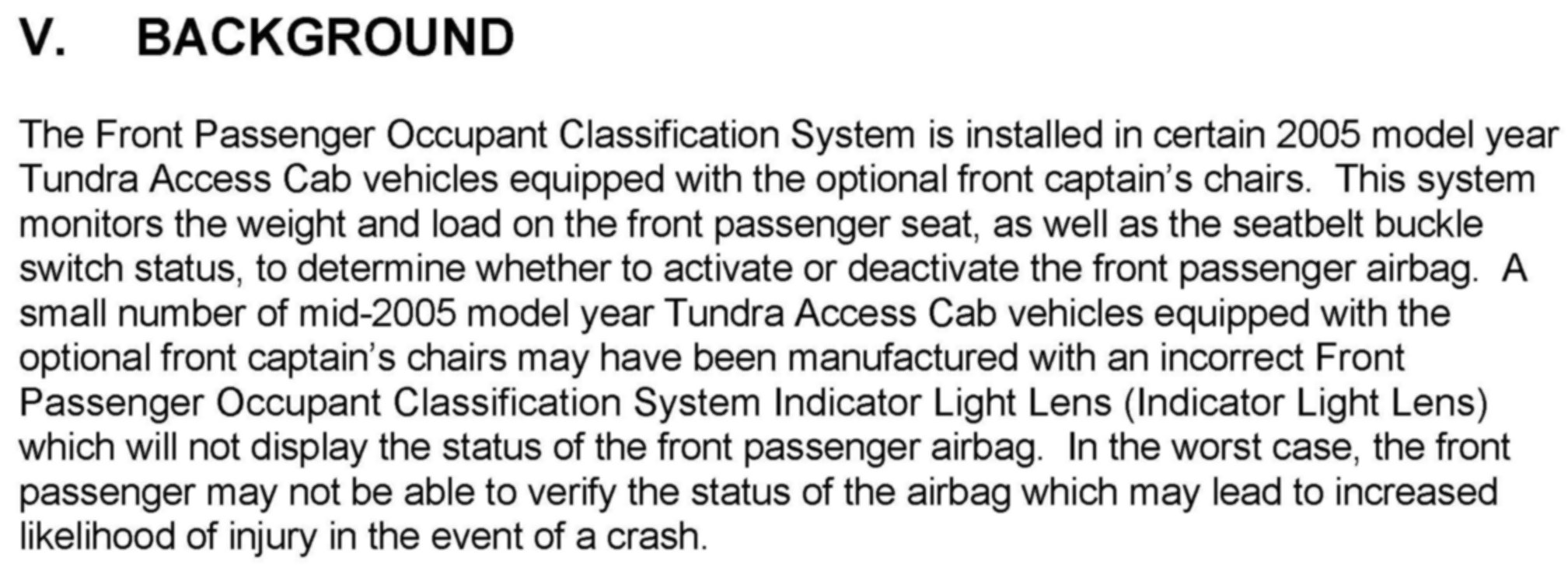 Recall - Occupant Classification System Lamp Lens