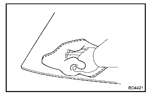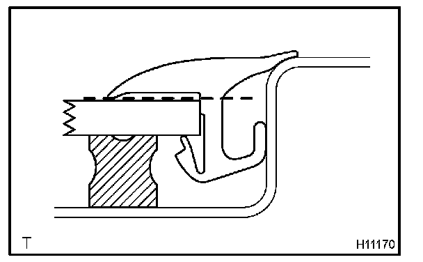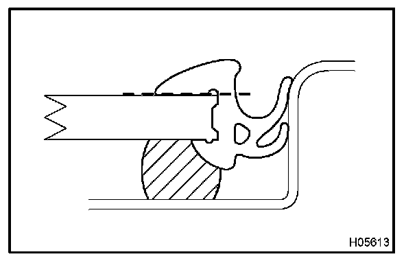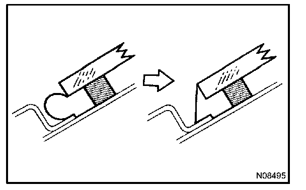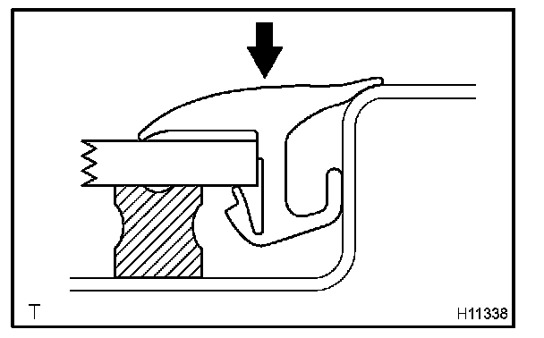 Attach the upper edge of the weatherstrip to body flange. Tap on the weatherstrip by hand.