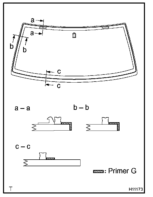a. Using a brush or sponge, coat the edge of the glass and the contact surface with Primer G.