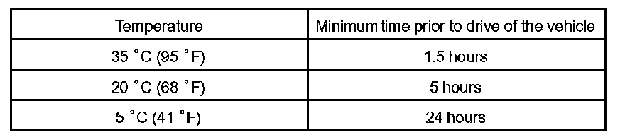 NOTE: Take care not to drive the vehicle during the time described in the table.