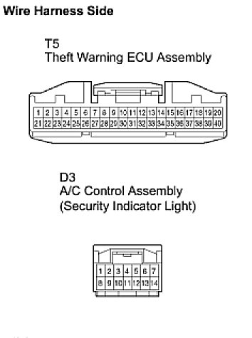 2. CHECK HARNESS AND CONNECTOR (THEFT WARNING ECU - SECURITY INDICATOR LIGHT)