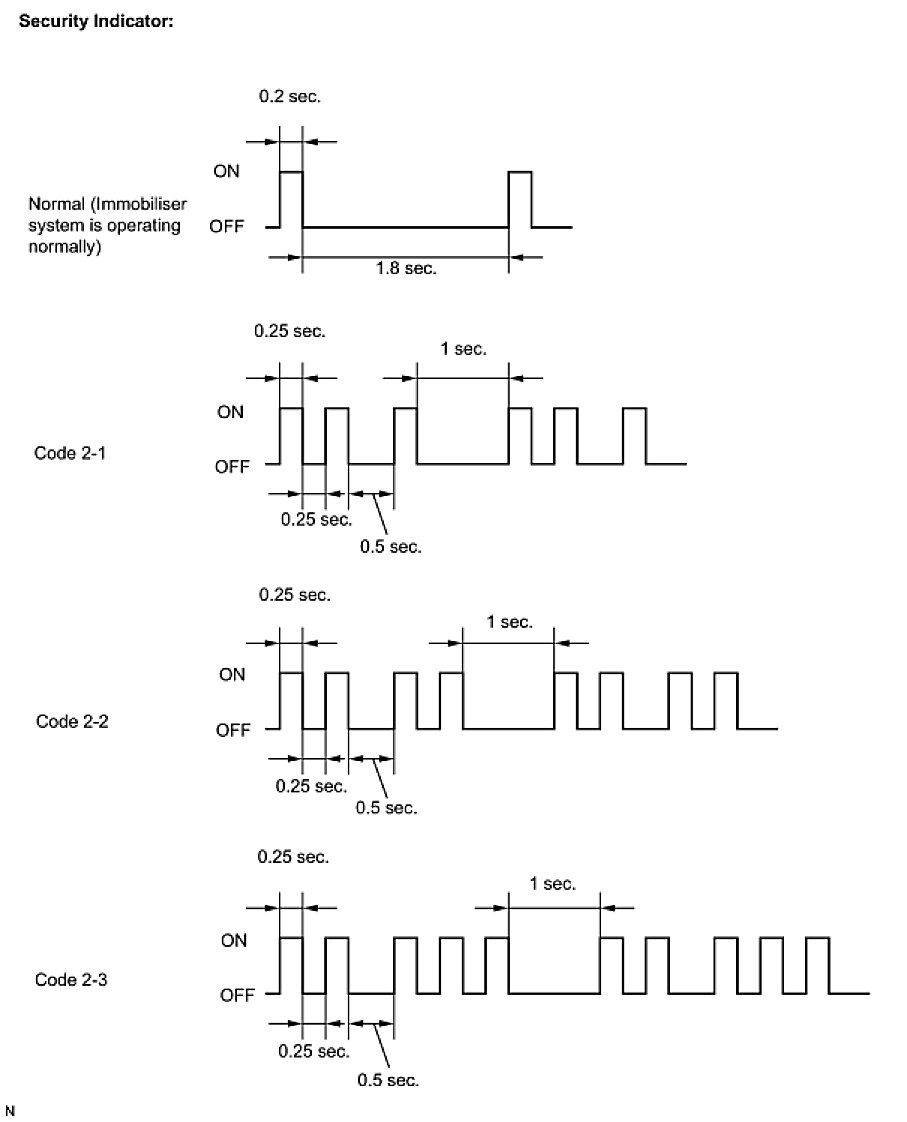 - When the immobiliser system is operating normally and the key is pulled out, the security indicator blinks continuously.