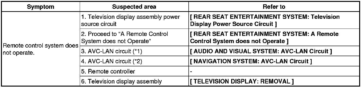 AUDIO / VISUAL: REAR SEAT ENTERTAINMENT SYSTEM: PROBLEM SYMPTOMS TABLE