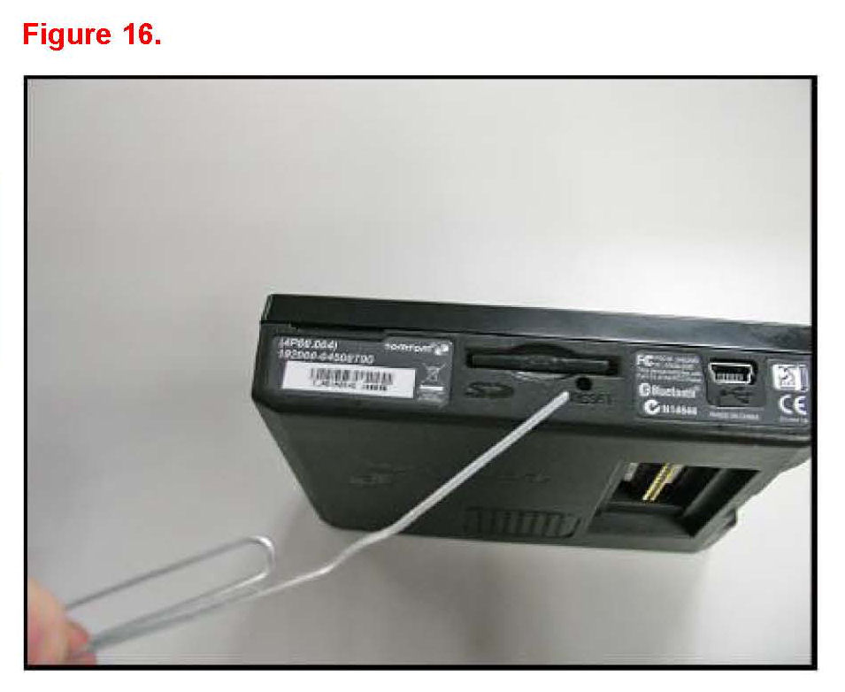 B. Push the reset button for 2 seconds. A paper clip or the tip of a ball point pen can be used to press the button as shown in Figure 16.