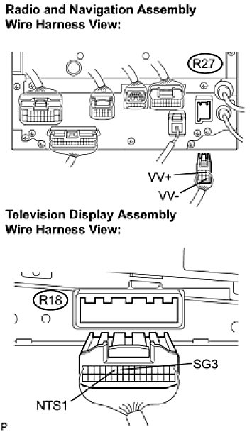 (a) Disconnect the radio and navigation assembly connector R27 and television display assembly connector R18.