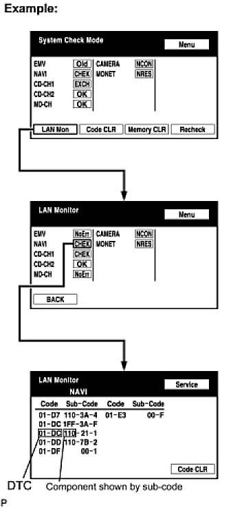 - Start the check from the circuit that is near the component shown by the sub-code first.