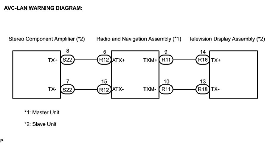 (a) Referring to the AVC-LAN wiring diagram below, check the AVC-LAN circuit between the television display assembly and the component shown by the sub-code.