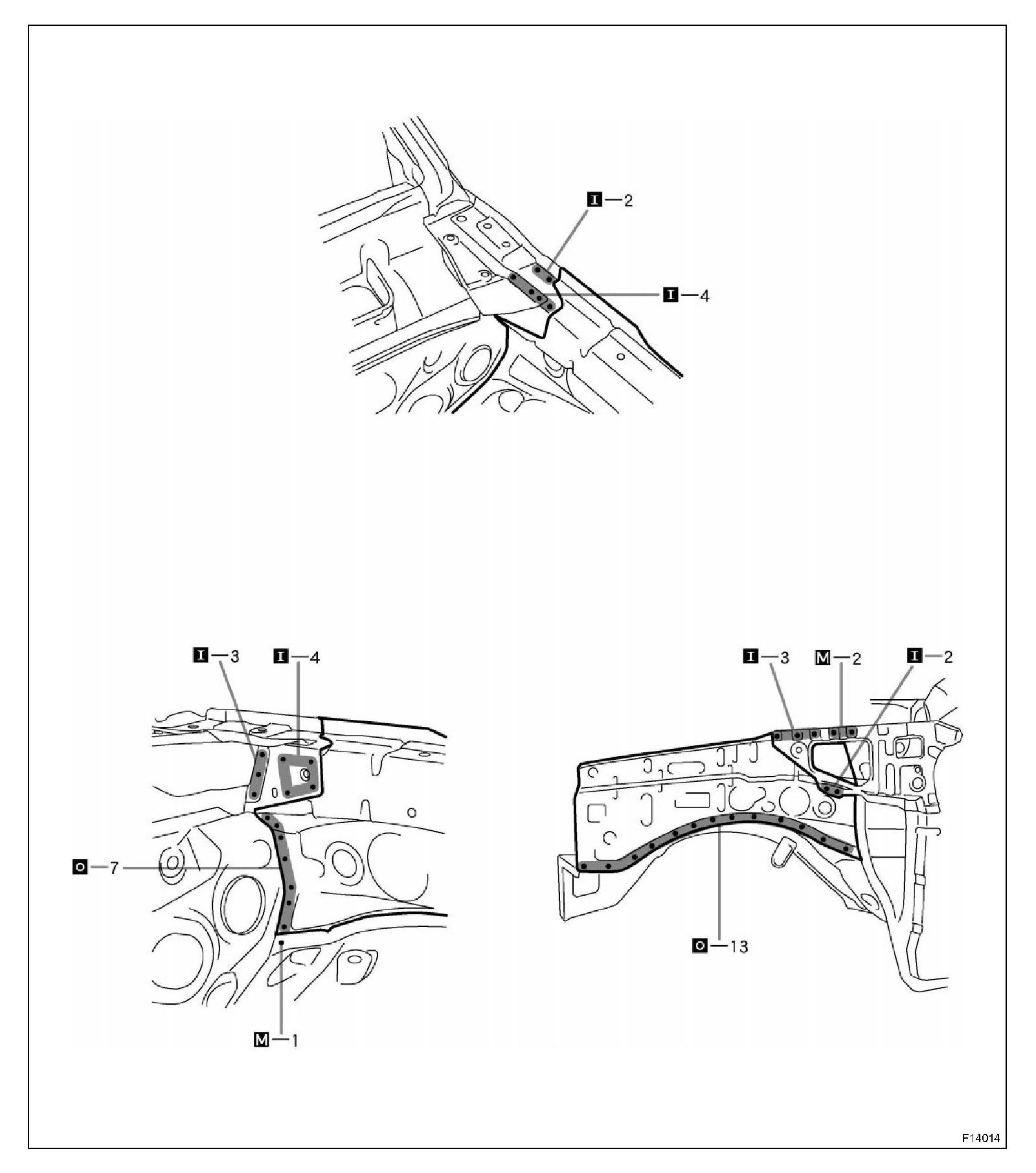 - After welding, apply body sealer and under-coating to the corresponding parts.