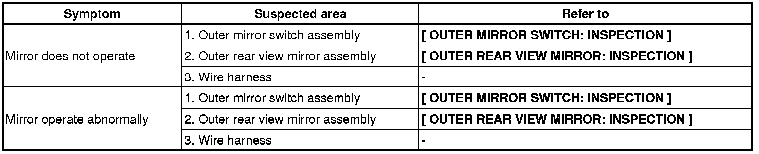 MIRROR: POWER MIRROR CONTROL SYSTEM: PROBLEM SYMPTOMS TABLE